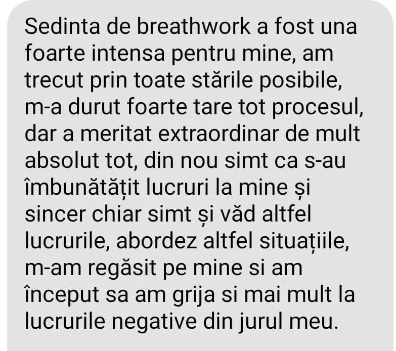Din experiența cu clienții pot spune că lucrul cu respirația este cel mai puternic și eficient proces de grup.