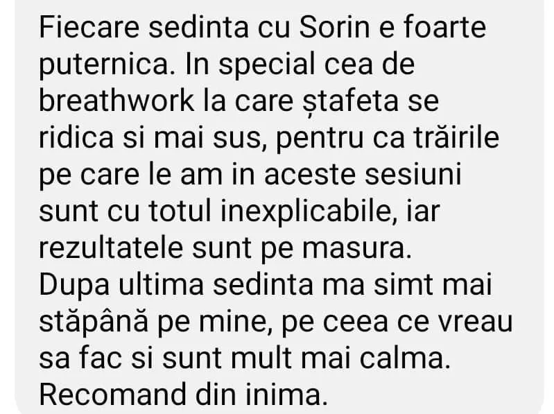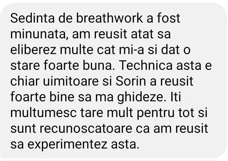 Acest rezultat poate fi orice în funcție de tipul de respirație – de la eliberarea de traume, anxietate, stres, epuizare, până la a te simţi transformat.